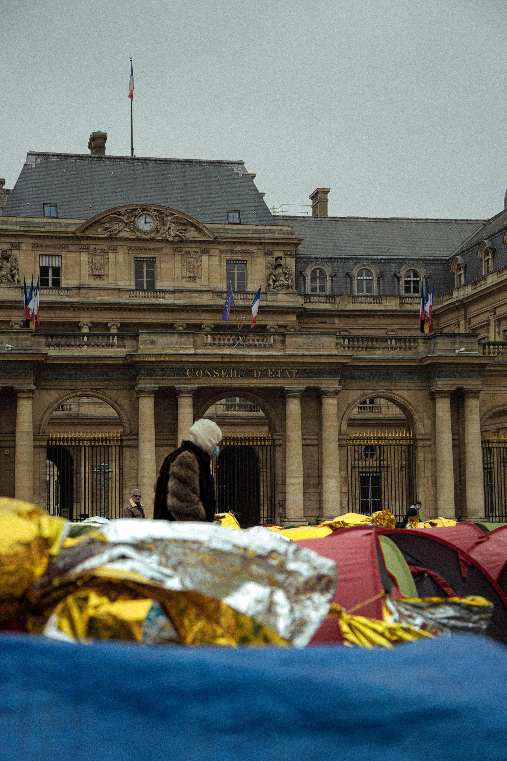 Photos réalisés avec lors de l'installations place du Palais Royal des mineurs isolés des Midis du Mie.